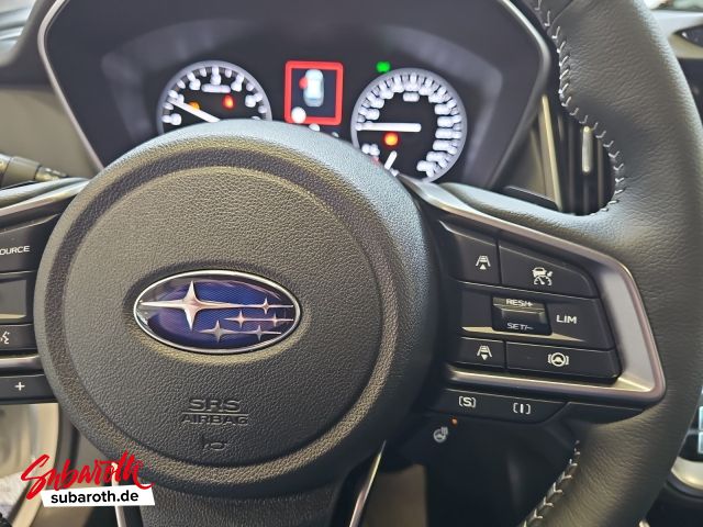 Antriebsart: Allradantrieb Auto-Hold-Funktion Automatische Fahrlichtschaltung / Lichtsensor Automatische Leuchtweitenregulierung Bremskraftverstärker elektrisch Fahrassistenz-System: aktiver Spurhalteassistent Fahrassistenz-System: Antriebsmomentkontrolle (Torque Vectoring) Fahrassistenz-System: Aufmerksamkeits-Assistent (Müdigkeitserkennungs-Sensor) Fahrassistenz-System: Ausweich-Assistent Fahrassistenz-System: Berganfahrhilfe Fahrassistenz-System: EyeSight Fahrassistenz-System: Fahrer-Erkennung (Driver Monitoring System) Fahrassistenz-System: Frontkollisionswarnung Fahrassistenz-System: Kollisionswarnsystem hinten Fahrassistenz-System: Querverkehrs-Assistent Fahrassistenz-System: Spurwechselassistent (Side Assist) Fahrassistenz-System: Totwinkel-Assistent Fahrassistenz-System: Verkehrszeichenerkennung Freisprechanlage Bluetooth Geschwindigkeitsregelanlage (Tempomat) mit Abstandsregelung Getriebe Automatik stufenlos - Lineartronic CVT (8-Stufen) Intelligenter Geschwindigkeits-Begrenzer Isofix-Kindersitz-System Kofferraumdeckel / Heckklappe elektr. betätigt (öffnen + schliessen, sensorgesteuert) Lenkrad beheizbar Lenkrad mit Multifunktion Lenkrad mit Schaltwippen/-tasten Lenksäule (Lenkrad) verstellbar (vertikal/axial) Lichtassistent (Coming Home, Leaving Home) Otto-Partikelfilter (GPF) Regensensor Rückfahrkamera mit Reinigungsdüse Schadstoffarm nach Abgasnorm Euro 6e Scheibenwischer mit Intervallschaltung Schließ-/Startsystem Keyless Access Servolenkung elektronisch gesteuert Sitz vorn rechts elektrisch verstellbar (8-fach) Stabilitäts-Programm X-Mode Start-Stopp Anlage Start-Stop System Sicherheit