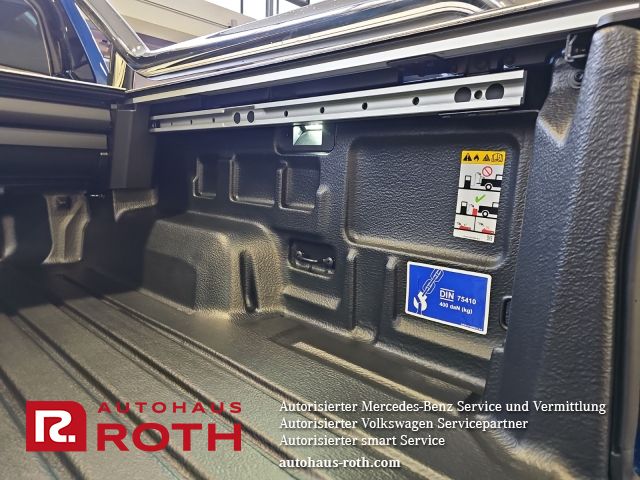Anhängerkupplung (Kugelkopf abnehmbar) Anhängersteckdose 13-Polig Aufsatzbügel Styling Bar (verchromt) Außenspiegel elektr. verstell-, heiz- und anklappbar und Umfeldleuchte Außenspiegel und Türgriffe außen verchromt Elektrische Schnittstelle für externe Nutzung inkl. Schalter Frontscheibe Dämmglas getönt, heizbar Heckklappe abschließbar über Zentralverriegelung (Pick-Up) Heckklappengriff Wagenfarbe (Pick-Up) Heckleuchten LED Karosserie/Aufbau: Doppelkabine (Double-Cab) Karosserie/Aufbau: Pick-Up Kühlergrill schwarz mit Chromleiste Ladeflächenbeleuchtung LED (außen) Laderaumjalousie (Roll Cover System elektrisch, Pick-Up) LED-Nebelscheinwerfer LM-Felgen 8x20 (Bendigo) Motor 3,0 Ltr. - 177 kW V6 TDI Radstand Standard Reserverad in Fahrbereifung (Leichtmetall) Seitenscheiben hinten und Heckscheibe abgedunkelt Stoßfänger hinten schwarz unlackiert mit Chrom-Applikationen Stoßfänger vorn Wagenfarbe Trittbretter seitlich mit Chromeinlage Unterfahrschutz Motor / Verteilergetriebe aus Stahl, für Tank aus Kunststoff Interieur